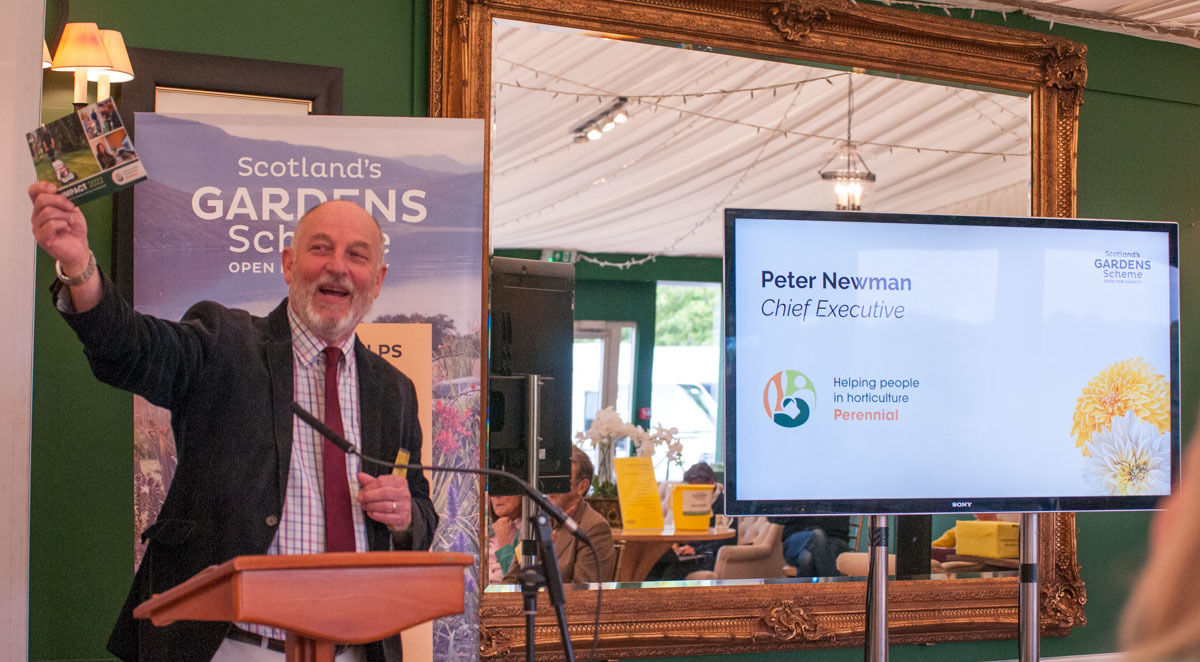 Our 2023 conference took place at the beautiful Dumfries House in Ayrshire and we were delighted to welcome garden owners, volunteers and friends from all over Scotland. We had presentations from our Chairman, Dougal Philip and Chief Executive, Liz Stewart, celebrating the impact of funds raised by all of our garden openers and volunteers. We heard from our core beneficiaries, QNIS, Perennial and Maggie’s about the inspiring and important they do to support well being. We enjoyed a fantastic question time chaired by Lesley Watson, with our panellists George Anderson, Penny Wright and Melissa Simpson, Head of Gardens at Dumfries House and also heard from Melissa Simpson about the beautiful gardens at Dumfries House and enjoyed a garden tour.